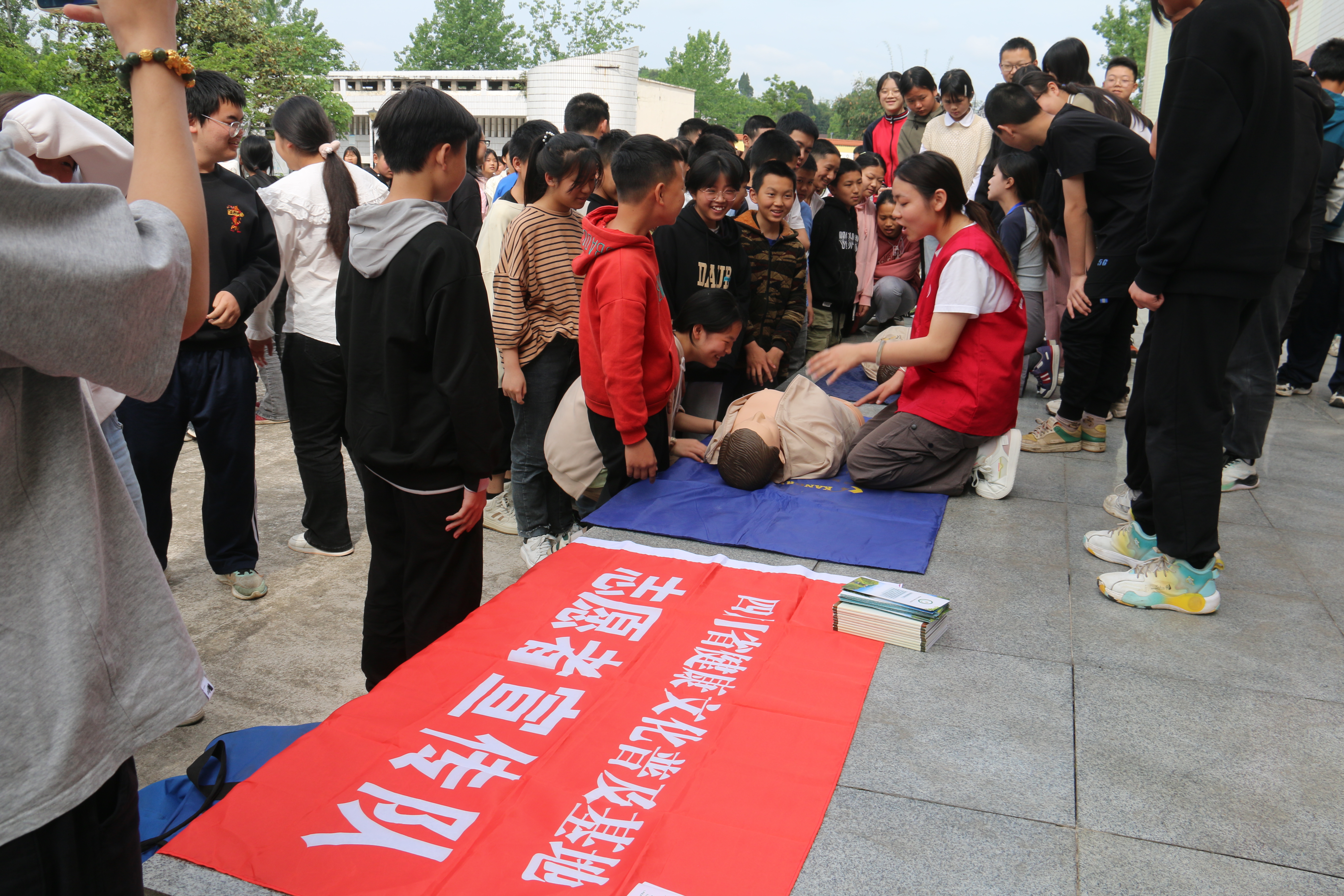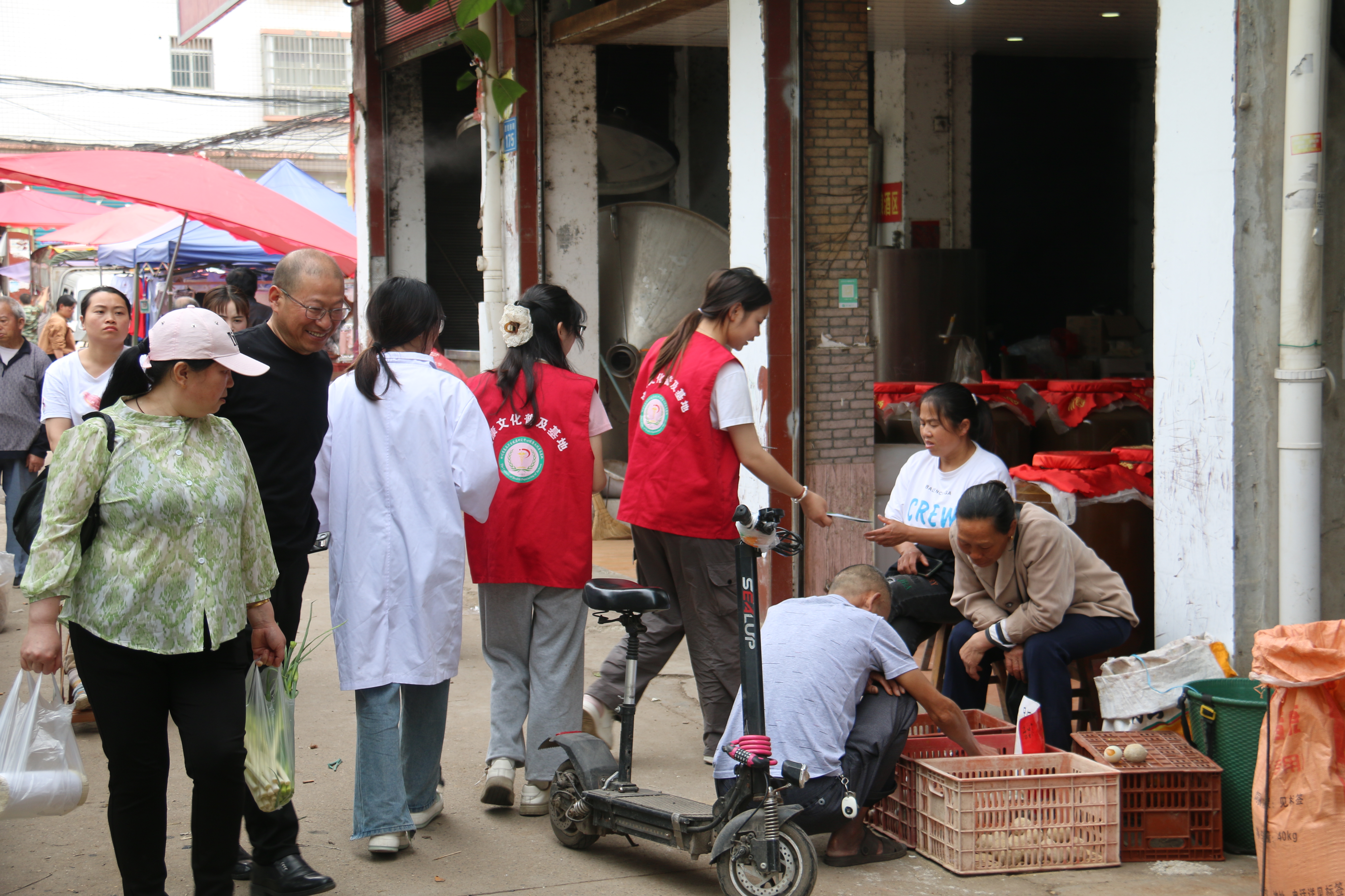 在吉安初中,志愿者们利用心肺复苏模拟人等简易医疗设备,给学生们进行了急救知识讲解、辅导,以及健康知识讲解等。并通过“学习贯彻习近平总书记来川视察重要指示精神——健康文化宣传进乡村”主题宣传展板等,给吉安初中的师生们进行宣讲。在吉安镇、李渡镇,志愿者们走村进户,到田间地头给村民们散发“健康文化宣传进乡村”的宣传手册和宣传折页,并给村民们进行健康知识宣传、宣讲。志愿者们还专门走访了几个村卫生站,与基层医疗人员进行交流,宣传习近平总书记在眉山市永丰村卫生的讲话:“衣食住行,还有医药,老百姓最关心的就是这些。”“老百姓的事,要实实在在干,干一件是一件,干一件成一件。”
